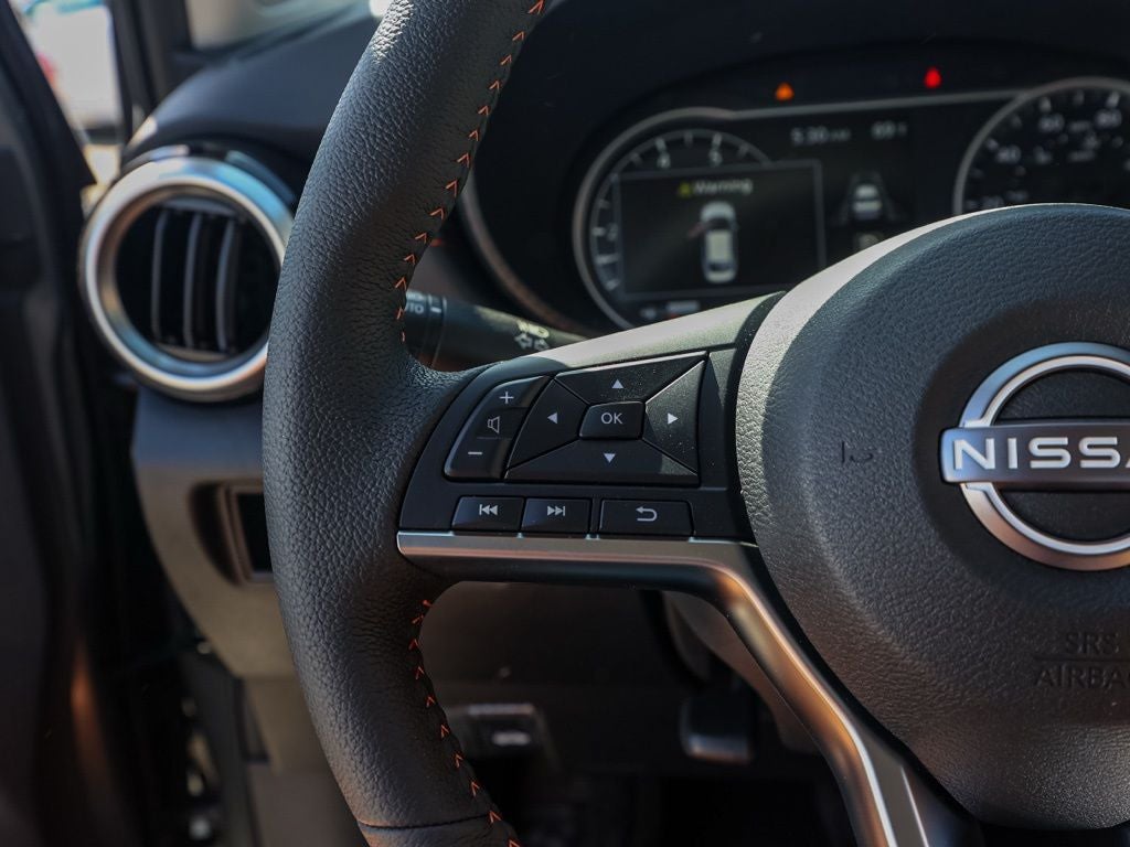 This 2025 Gun Metallic Nissan Versa 1.6 SR FWD is well equipped and includes these features and benefits: Trunk Package (Shopping Bag Hooks and Trunk Net), 17 Aluminum Alloy Wheels, 6 Speakers, ABS brakes, Air Conditioning, Alloy wheels, AM/FM radio: SiriusXM, Apple CarPlay/Android Auto, Auto High-beam Headlights, Automatic temperature control, Blind Spot Warning, Brake assist, Bumpers: body-color, Carpeted Floor Mats & Trunk Mat (5-Piece Set), Delay-off headlights, Driver door bin, Driver vanity mirror, Dual front impact airbags, Dual front side impact airbags, Electronic Stability Control, Emergency communication system, Front anti-roll bar, Front Bucket Seats, Front Center Armrest, Front reading lights, Front wheel independent suspension, Fully automatic headlights, Heated door mirrors, Heated Front Bucket Seats, Heated front seats, Illuminated entry, Knee airbag, Leather steering wheel, Low tire pressure warning, Occupant sensing airbag, Outside temperature display, Overhead airbag, Panic alarm, Passenger door bin, Passenger vanity mirror, Power door mirrors, Power steering, Power windows, Radio data system, Radio: AM/FM Audio System, Rear Parking Sensors, Rear side impact airbag, Rear window defroster, Remote keyless entry, Speed control, Splash Guards, Split folding rear seat, Spoiler, SR Fabric Seat Trim, Steering wheel mounted audio controls, Tachometer, Telescoping steering wheel, Tilt steering wheel, Traction control, Trip computer, Turn signal indicator mirrors, USB Charging Cable Set, and Variably intermittent wipers Plus 3 Month 3000 Mile Warranty. See Dealer For Details. Apple Car Play/Android Auto, Automatic Climate Control, Backup Camera.