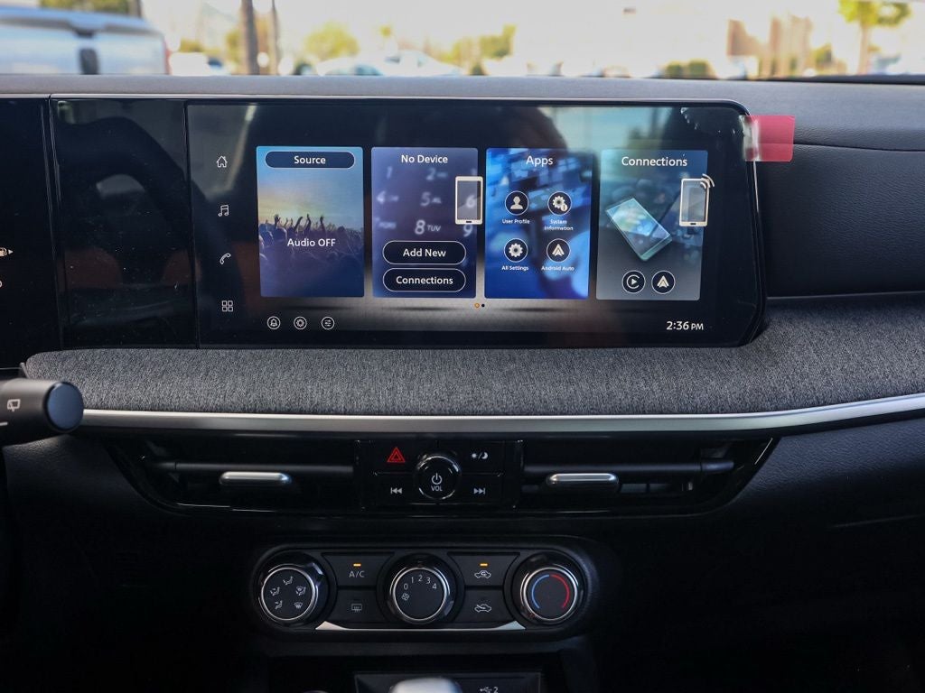 - Radio: AM/FM/SiriusXM Audio System -inc: 12.3" color touchscreen display w/4 speakers, Bluetooth® hands-free phone system, streaming audio via Bluetooth®, NissanConnect featuring wireless Apple CarPlay, wireless Android Auto, Siri eyes free and hands-free text messaging assistant, audio and Bluetooth® steering wheel switches