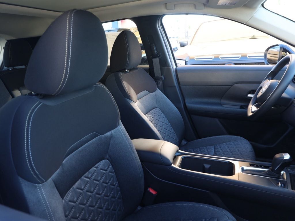 This 2026 Aspen White Tricoat/Super Black Nissan Kicks SV FWD is well equipped and includes these features and benefits: Cold Weather Package (Heated Front Seats, Heated Mirrors, and Rear Floor Heater Ducts), SV Premium Package (Illuminated Driver & Passenger Sun Visors, Panoramic Moonroof, and Sunglass Holder), 2-Tone Premium Paint, 4 Speakers, 4-Wheel Disc Brakes, ABS brakes, Air Conditioning, AM/FM radio, Auto High-beam Headlights, Automatic temperature control, Blind Spot Warning, Brake assist, Bumpers: body-color, Carpeted Floor Mats & Underfloor Protector, Cloth Seat Trim, Driver door bin, Driver vanity mirror, Dual front impact airbags, Dual front side impact airbags, Electronic Stability Control, Emergency communication system, Exterior Parking Camera Rear, Front anti-roll bar, Front Bucket Seats, Front Center Armrest, Front reading lights, Front wheel independent suspension, Fully automatic headlights, Illuminated entry, Knee airbag, Low tire pressure warning, NissanConnect featuring Apple CarPlay and Android Auto, Occupant sensing airbag, Outside temperature display, Overhead airbag, Panic alarm, Passenger door bin, Passenger vanity mirror, Power door mirrors, Power steering, Power windows, Radio data system, Radio: AM/FM/SiriusXM Audio System, Rear anti-roll bar, Rear reading lights, Rear side impact airbag, Rear window defroster, Rear window wiper, Remote keyless entry, Security system, Speed control, Speed-sensing steering, Splash Guards, Split folding rear seat, Spoiler, Sport steering wheel, Steering wheel mounted audio controls, Tachometer, Telescoping steering wheel, Tilt steering wheel, Traction control, Trip computer, Variably intermittent wipers, and Wheels: 17 Steel Flex w/Full Covers Plus 3 Month 3000 Mile Warranty. See Dealer For Details. Apple Car Play/Android Auto, Automatic Climate Control, Backup Camera.