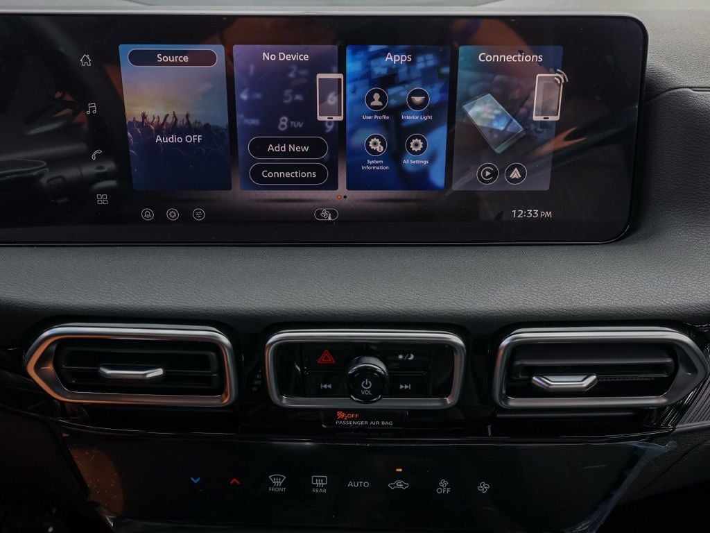 - Radio: AM/FM w/RDS/MP3 -inc: 4 speakers, 12.3" NissanConnect multimedia center display, Bluetooth® hands-free phone system, streaming audio via Bluetooth®, hands-free text messaging assistant, Siri Eyes Free, Google Assistant voice recognition, wireless Apple CarPlay and Android Auto and (2) front USB connection port (type C)