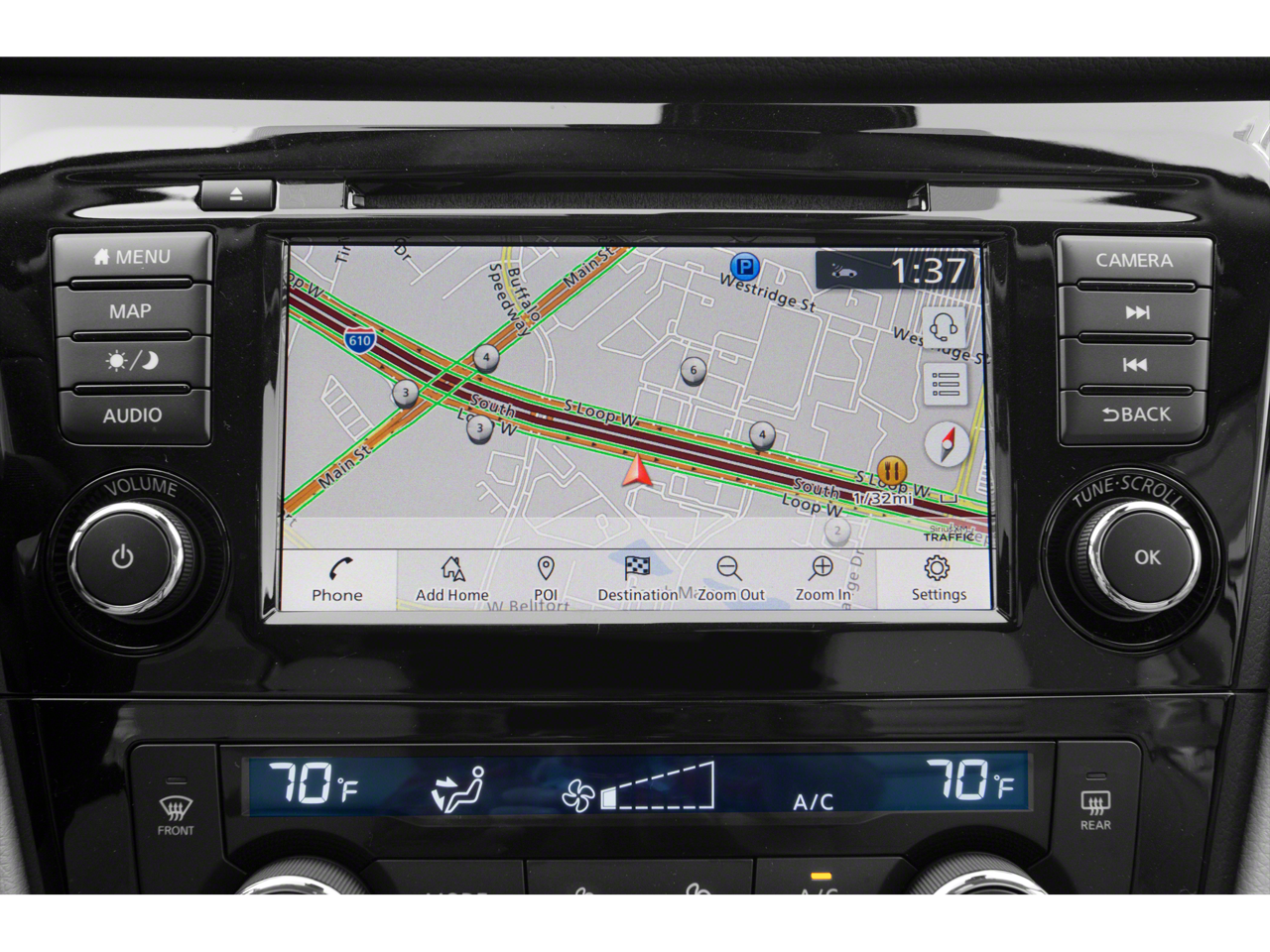 - Radio: AM/FM/CD/AUX NissanConnect w/Navigation -inc: Nissan door-to-door navigation w/3D building graphics, satellite imagery, HD Radio, SiriusXM Traffic, SiriusXM Travel Link (weather, fuel prices, movie listings, stock info, sports and parking), 7" color display w/multi-touch control, Apple CarPlay, Android Auto, SiriusXM satellite radio w/advanced audio features, USB connection port for iPod interface and other compatible devices, Bluetooth® hands-free phone system, streaming audio via Bluetooth® and hands-free text messaging assistant