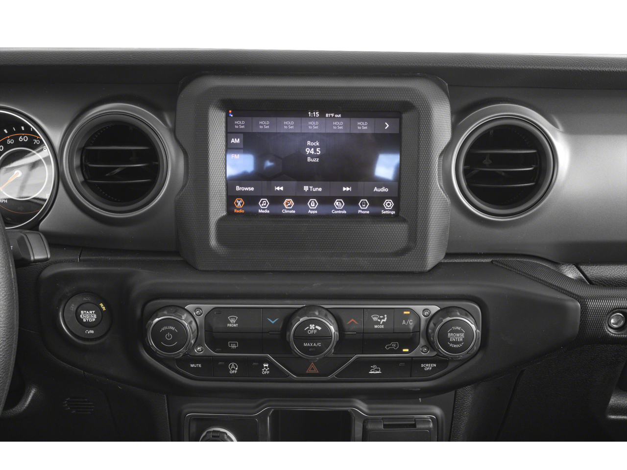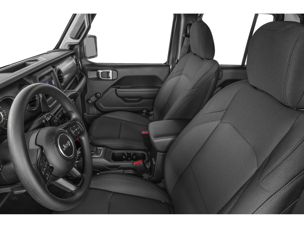 8.4 Radio & Premium Audio Group (Alpine Premium Audio System, Apple CarPlay, Google Android Auto, GPS Antenna Input, GPS Navigation, Integrated Center Stack Radio, Integrated Voice Command w/Bluetooth®, Radio: Uconnect 4C Nav w/8.4 Display, SiriusXM Satellite Radio, and USB Host Flip), Cold Weather Group (110 MPH Vehicle Max Speed Calibration), Convenience Group (Universal Garage Door Opener), Quick Order Package 24S Sport S (Automatic Headlamps, Body Color Fender Flares (2-Piece), Daytime Running Lamp System, Deep Tint Sunscreen Windows, Front 1-Touch Down Power Windows, Leather Wrapped Steering Wheel, Normal Duty Plus Suspension, Power Heated Mirrors, Power Tailgate Lock, Remote Keyless Entry, Security Alarm, Speed Sensitive Power Locks, Sport S, Sun Visors w/Illuminated Vanity Mirrors, and Wheels: 17 x 7.5 Tech Silver Aluminum), Technology Group (2-Door Passive Entry, Front Door Locks), 3.73 Rear Axle Ratio, 4-Wheel Disc Brakes, 8 Speakers, ABS brakes, Air Conditioning, AM/FM radio, Apple CarPlay/Android Auto, Brake assist, Cloth Low-Back Bucket Seats, Compass, Delay-off headlights, Driver door bin, Driver vanity mirror, Dual front impact airbags, Dual front side impact airbags, Electronic Stability Control, Emergency communication system: SiriusXM Guardian, Front anti-roll bar, Front Bucket Seats, Front Center Armrest w/Storage, Front fog lights, Front reading lights, Integrated roll-over protection, Low tire pressure warning, Normal Duty Suspension, Occupant sensing airbag, Outside temperature display, ParkView Rear Back-Up Camera, Passenger door bin, Passenger vanity mirror, Power steering, Radio data system, Radio: Uconnect 4 w/7 Display, Rear anti-roll bar, Rear reading lights, Speed control, Split folding rear seat, Steering wheel mounted audio controls, Tachometer, Telescoping steering wheel, Tilt steering wheel, Traction control, Trip computer, and Variably intermittent wipers.