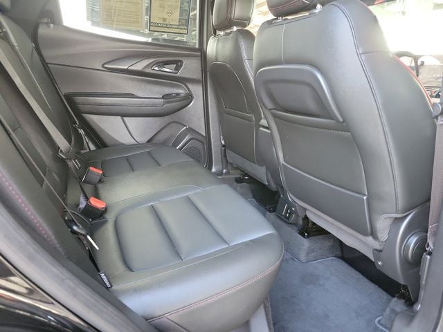 CARFAX One-Owner. Clean CARFAX. Convenience Package (1 Type-A & 1 Type-C USB Charging-Only Ports, 120-Volt Power Outlet, Cabin Humidity Sensor, Driver & Front Passenger Illuminated Vanity Mirrors, Hands-Free Power Programmable Liftgate, Inside Rear-View Auto-Dimming Mirror, Single-Zone Auto Climate Control Air Conditioning, and Wireless Charging), Driver Confidence Package (Lane Change Alert w/Side Blind Zone Alert, Rear Cross Traffic Alert, and Rear Park Assist), Preferred Equipment Group 1RS, 1 Type-A & 1 Type-C USB Ports, 11 Diagonal HD Color Touchscreen, 2-Way Power Driver Lumbar Seat Adjuster, 4-Way Manual Front Passenger Seat Adjuster, 4-Wheel Disc Brakes, 5.45 Final Drive Axle Ratio, 6 Speakers, 6-Speaker Audio System Feature, 8-Way Power Driver Seat Adjuster, ABS brakes, Air Conditioning, Alloy wheels, AM/FM radio: SiriusXM, Auto High-beam Headlights, Brake assist, Bumpers: body-color, Chevrolet Connected Access Capable, Compass, Delay-off headlights, Driver door bin, Driver vanity mirror, Dual front impact airbags, Dual front side impact airbags, Electronic Stability Control, Emergency communication system: OnStar and Chevrolet connected services capable, Evotex Seat Trim, Exterior Parking Camera Rear, Flat-Folding Front Passenger Seatback, Front anti-roll bar, Front Bucket Seats, Front Center Armrest, Front License Plate Bracket, Front reading lights, Front wheel independent suspension, Fully automatic headlights, Heated door mirrors, Heated Driver & Front Passenger Seats, Heated front seats, Heated steering wheel, Illuminated entry, Knee airbag, Low tire pressure warning, Mosaic Black Metallic Roof, Occupant sensing airbag, Overhead airbag, Overhead console, Panic alarm, Passenger door bin, Passenger vanity mirror, Power door mirrors, Power driver seat, Power steering, Power windows, Radio data system, Radio: AM/FM Stereo Audio System, Rear seat center armrest, Rear side impact airbag, Rear window defroster, Rear window wiper, Remote keyless entry, Ride & Handling Suspension, Security system, SiriusXM, Speed control, Split folding rear seat, Spoiler, Steering wheel mounted audio controls, Tachometer, Telescoping steering wheel, Tilt steering wheel, Traction control, Trip computer, Variably intermittent wipers, Wheels: 19 High Gloss Black Machined Aluminum, and Wireless Apple CarPlay/Android Auto. Mosaic Black Metallic 2024 Chevrolet TrailBlazer RS FWD CVT 1.3L Ecotec Turbo DOHC SIDI w/VVT